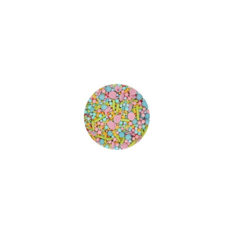 Une pincée de FunCakes Sprinkle Medley est tout ce qu'il vous faut pour rendre vos friandises si joyeuses en quelques secondes ! Ce mélange de saupoudrages apporte de la joie et des sourires sur les visages des gens. Idéal pour toutes sortes d'occasions : fêtes d'anniversaire, enterrements de vie de jeune fille, mariages, championnats du monde de football, fêtes d'été, ou même la fête de Noël au bureau. Utilisez ces saupoudrages pour décorer vos cupcakes, donuts ou cake pops, et faites plaisir à tout le monde.